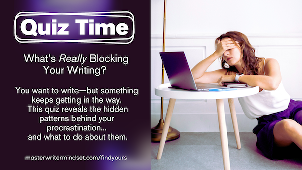 It’s based on my research into 13 distinct types of writer procrastination. But instead of dumping all the data on you at once, it helps you uncover your core writing conflict—the psychological pattern quietly sabotaging your progress.